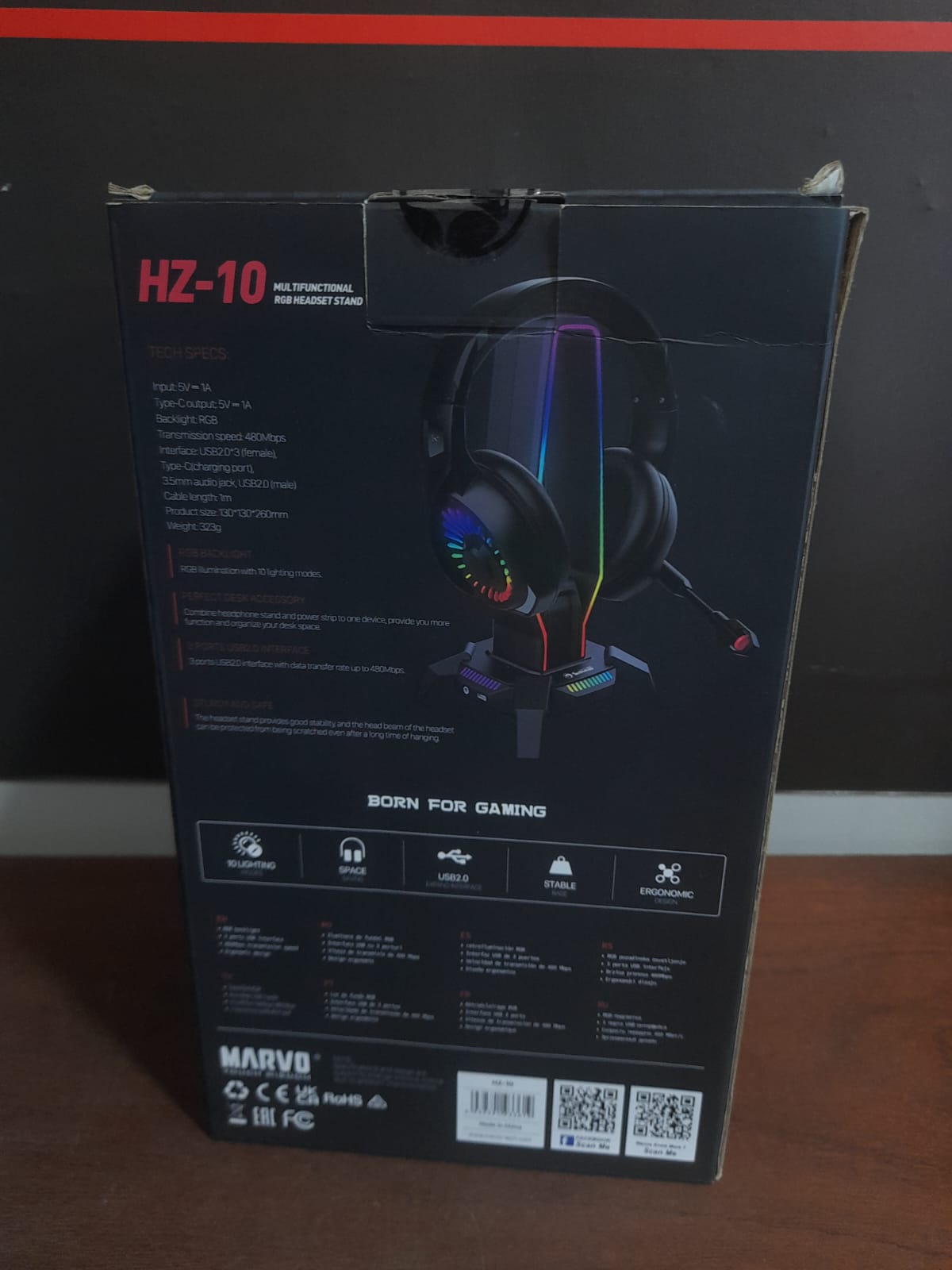 - Base para audífonos con iluminación RGB y efectos especiales.